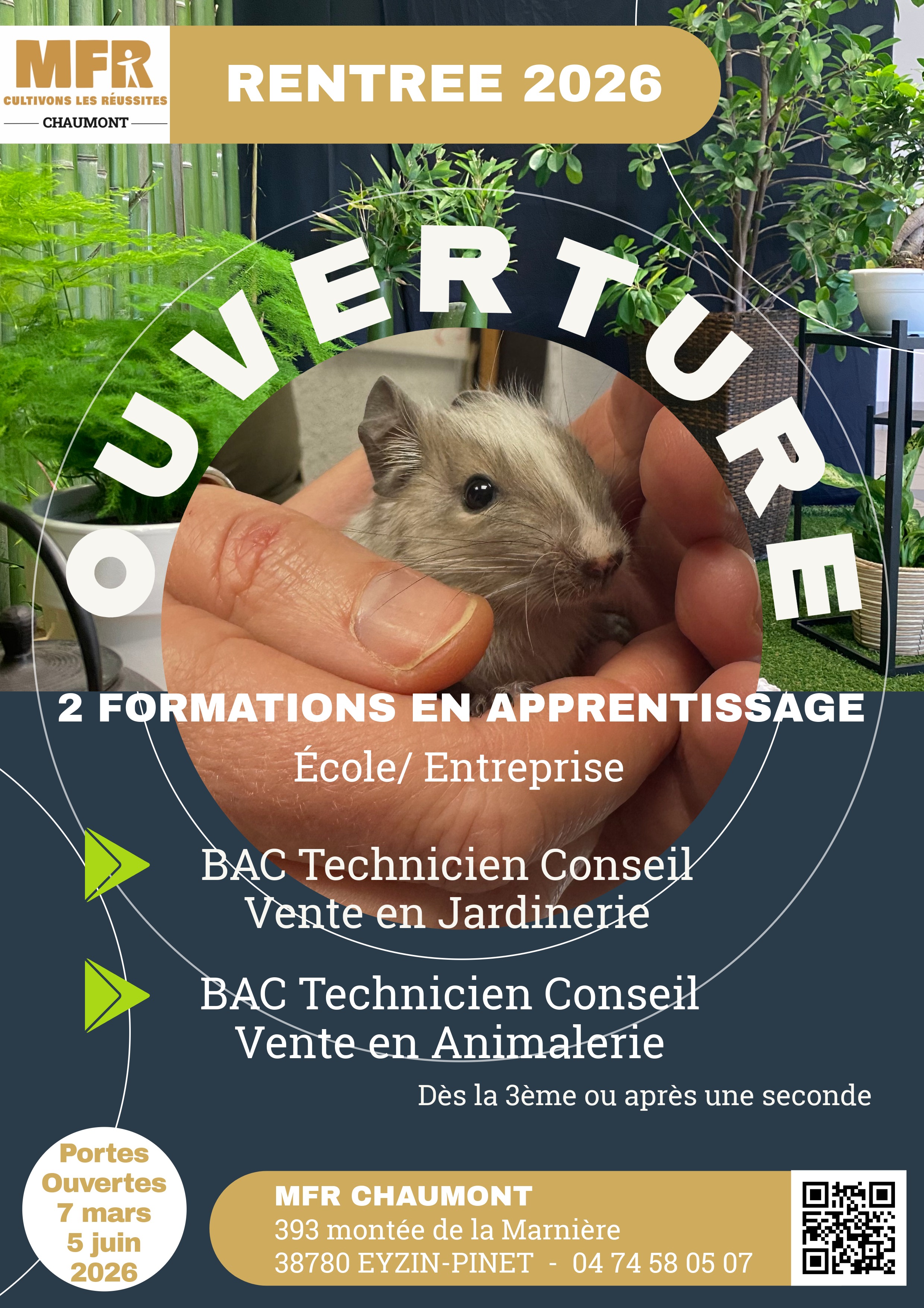 La MFR Chaumont vous accueillera sans RDV, de 9h à 18h afin de vous présenter et échanger sur ses formations de la 4e au BTS !